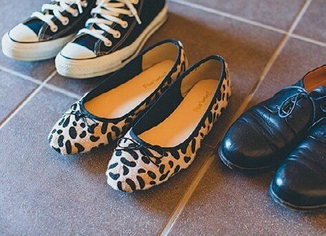 子育て中の今は、スニーカーやヒールの低い靴を愛用。「色はベーシックな白、黒、ベージュが多いので、どの靴かパッとわかるよう、つま先側を前に向けて収納しています」。