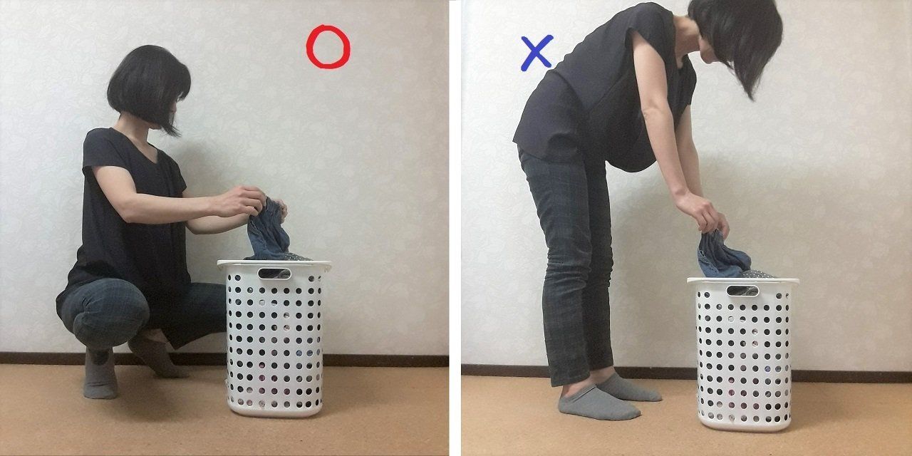 そんな時は、例えば洗濯物を取るときや、床に落ちたものを拾う時などに、腰を曲げるのではなく、ひざをつくのでもなく、1回1回そんきょ。