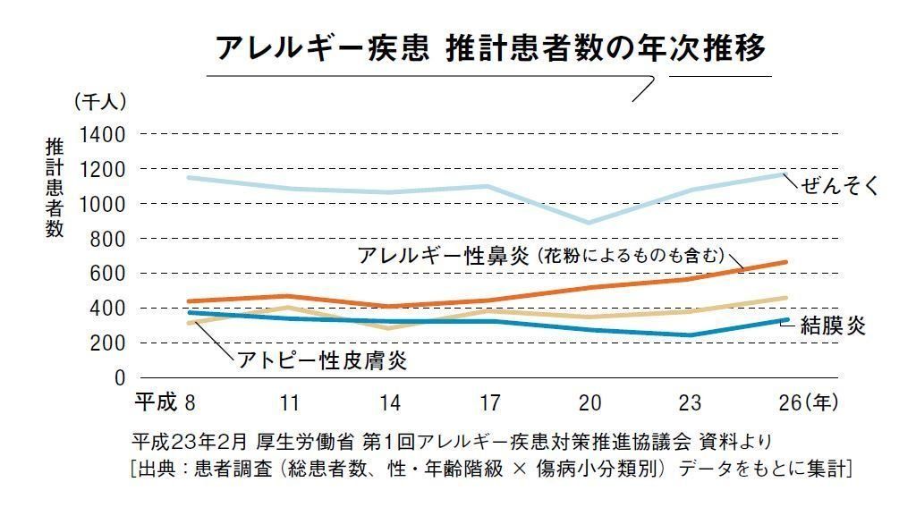 現代の住まいは気密性が向上し、冷暖房の普及により一年中一定の温度に。さらに、小まめに換気しないと湿度も上昇。高温多湿はダニが繁殖しやすい環境のため、屋内のダニの量が年々増加しています。ダニの死骸やフンはアレルギーの原因の1つ。だから、ダニの増加は近年のアレルギー人口の増加に関係しているのです。