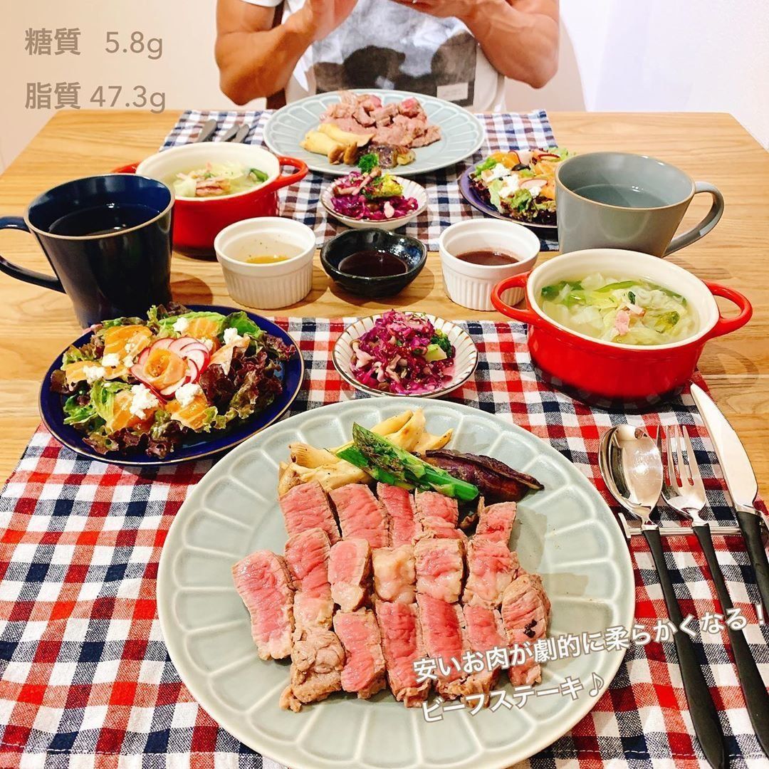 夜ごはんにビーフステーキを食べたerina.1111_cookingさん。焼く前にお肉をプレーンヨーグルトに漬け込みます。30分常温で放置したら、キッチンペーパーでヨーグルトを拭き落とし、お肉を作ると安いお肉でも柔らかくなってとてもおいしいのだそう!