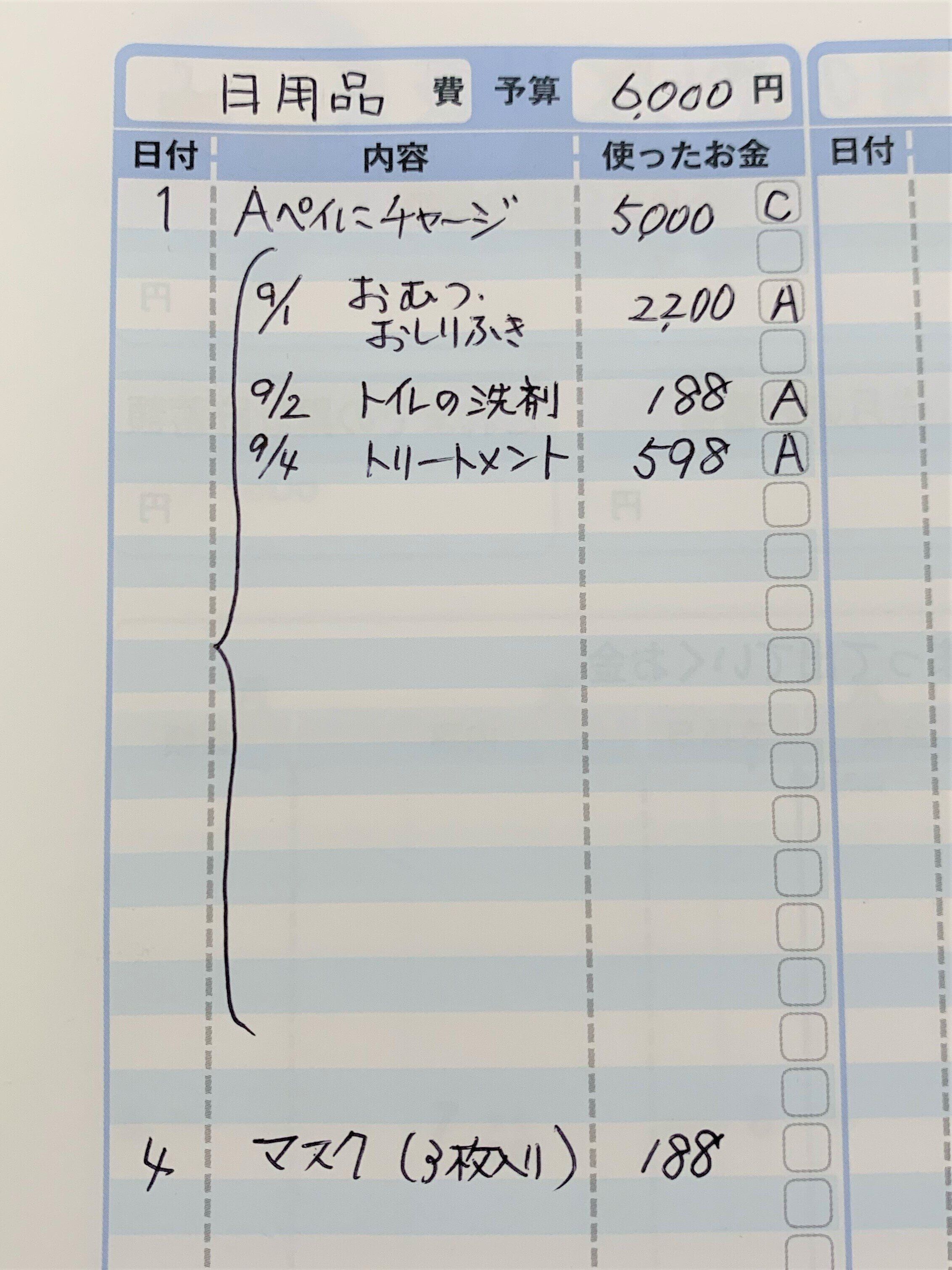 タイプA 使った費目ごとに記入