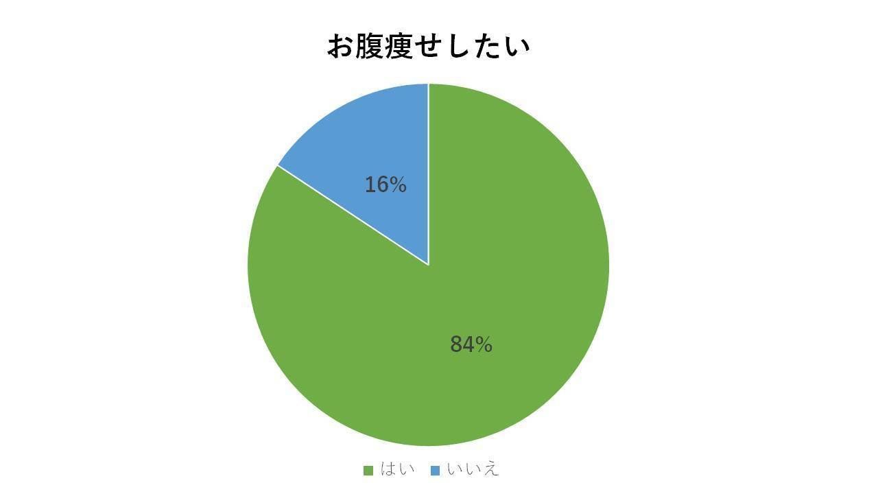 今の自分の体型で、お腹ヤセしたいと思うか聞いてみたところ、84.3%の人が「はい」と回答しました。