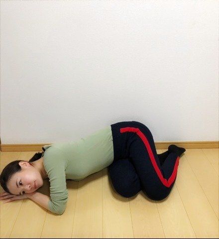 2)右耳を床につけ正座に戻る