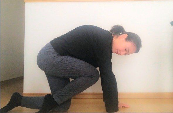 2、四つん這いの状態で、片足だけ後ろにずらす