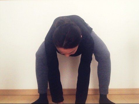 四つん這いの状態から、片足だけ後ろにずらします。そのとき、後ろに下げた足の方向を見ていきます。ヒキ鶴用に、ゆっくりと足を戻し、四つん這いの状態に戻ります。