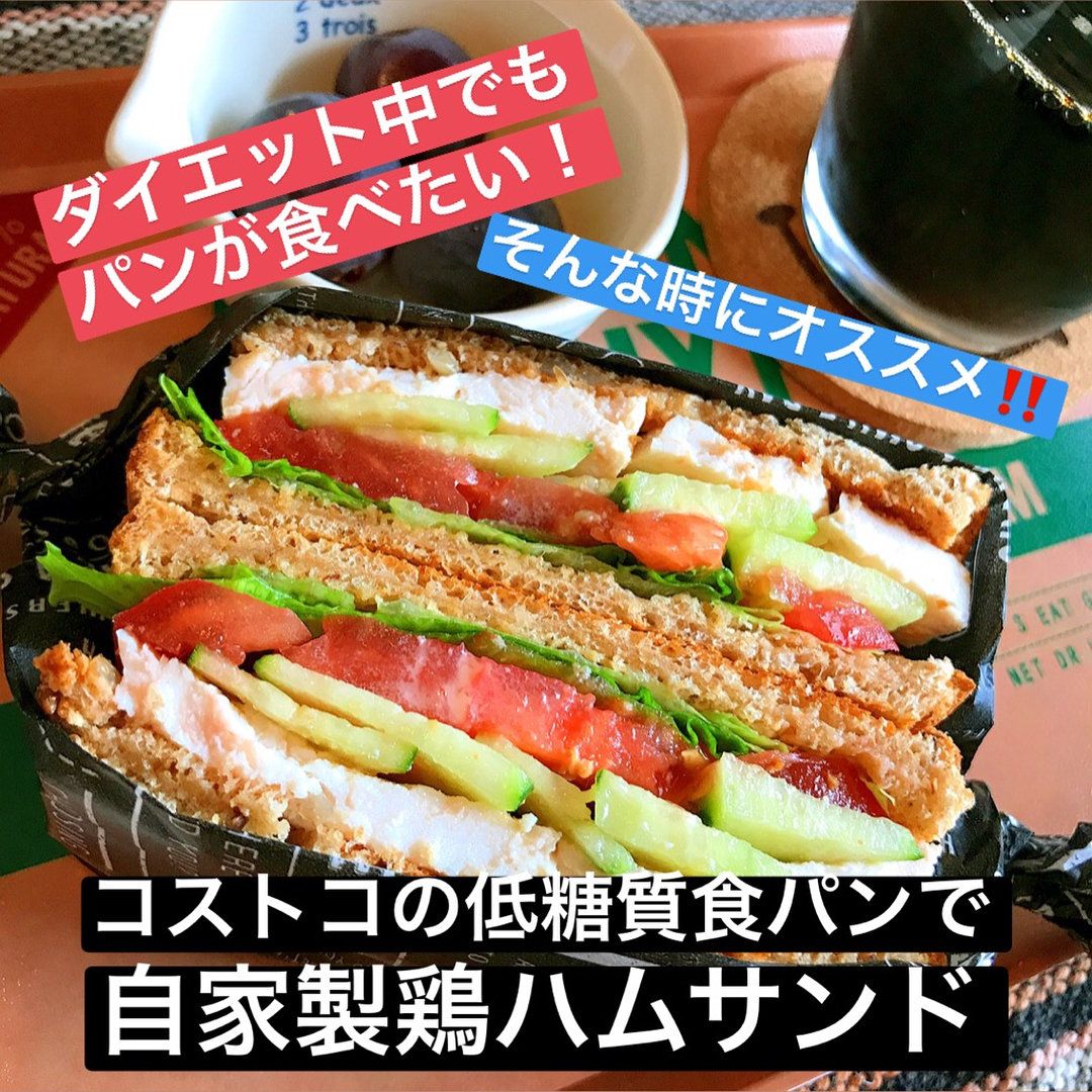 ダイエット中でもパンを食べたいというとき、sachi_diet_さんがおすすめしているのがコストコのマルチグレイン食パン。バターや添加物不使用なのに、しっとりとした甘みがあるのだそう。sachi_diet_さんは、自家製の鶏ハムを挟んでサンドイッチにアレンジ。ボリューミーかつヘルシーで、見た目も美しいですね!