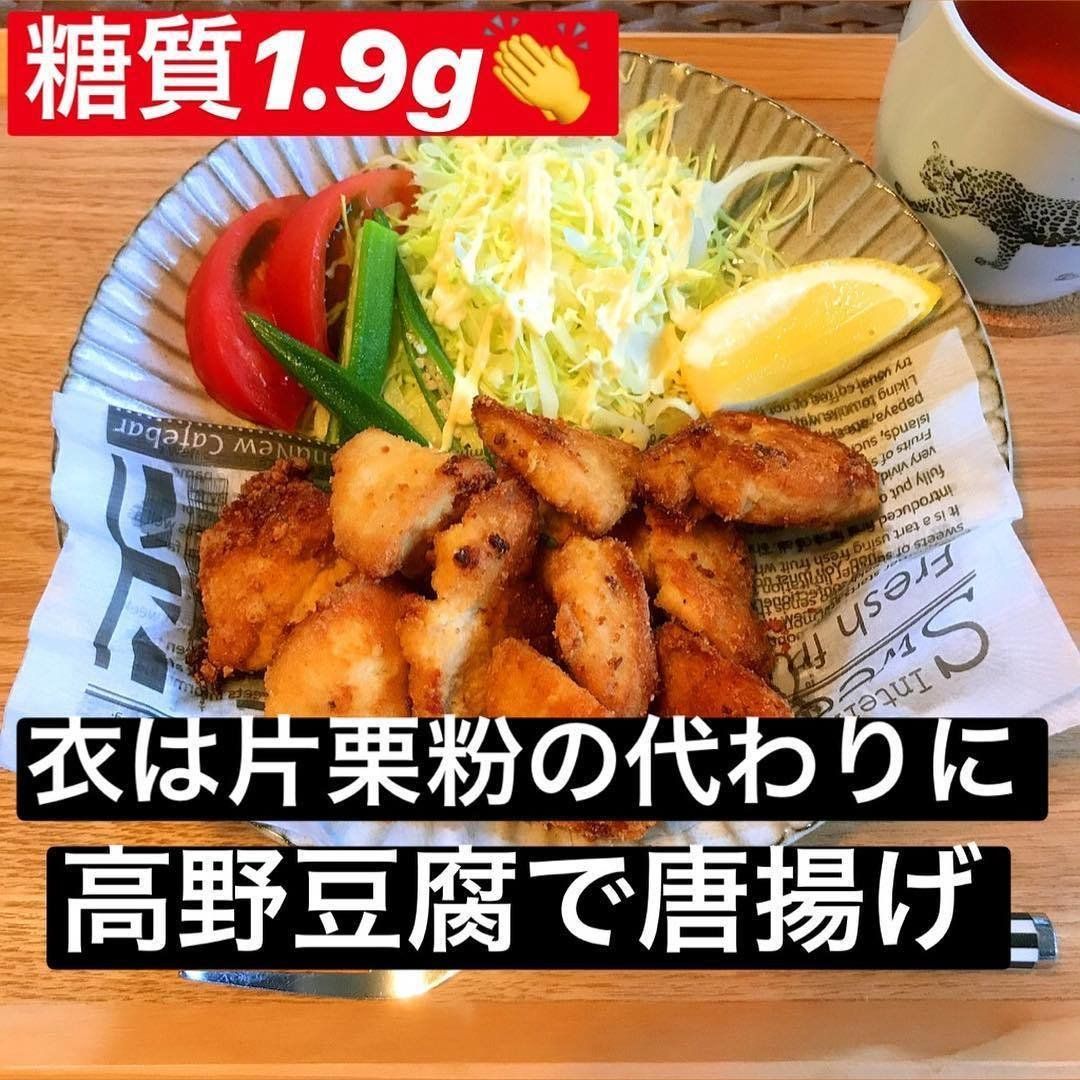 sachi_diet_さんは、鶏の唐揚げも低糖質レシピに取り入れています。片栗粉の代わりにすりおろした高野豆腐を衣に使えば、糖質をぐっと抑えられるのだとか。高野豆腐は、低糖質・高たんぱく質で、鉄分やカルシウムも含まれている優秀食材。鶏肉と組み合わせることで、よりたんぱく質をとれて、満足感もあるメニューになりました。