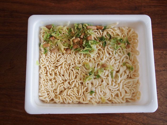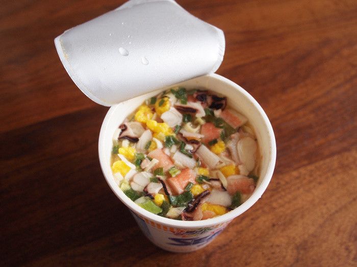 20分後…ルックスだけでもおいしそうなのが伝わってきますね!カップ焼きそば同様、20分くらいという時間にとらわれず、見た目で判断することも重要です。さてどんなお味でしょうか。