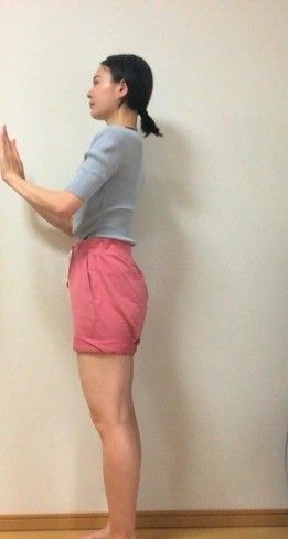 3、手の位置を胸の高さに移動し、同じ動作をする