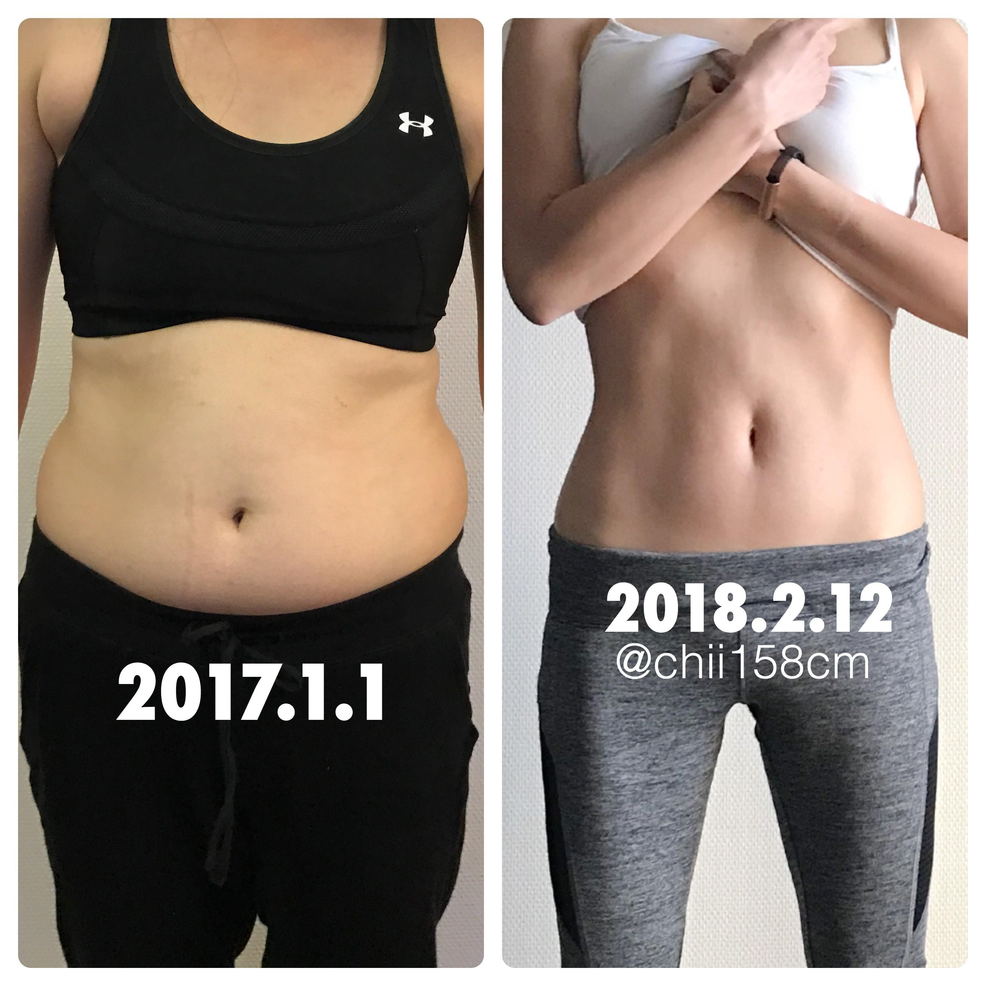 chii158cmさんは1年で約4kg減量。上のビフォアアフターの写真、4kg以上痩せて見えませんか?筋肉がついたキレイな体です。