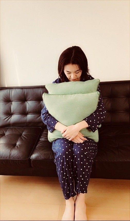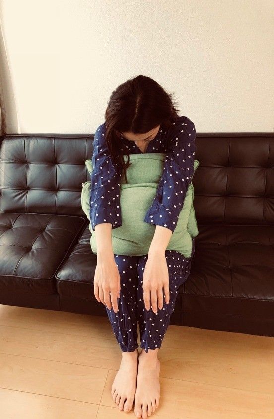 ①クッションを抱きかかえて深呼吸