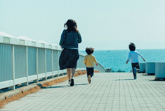 家に引きこもらず、子どもと外遊び。「体力がつくと家事もやりくりも頑張れる。思い切り体を動かして笑うと気持ちよく、少々の挫折にへこたれなくなりました」