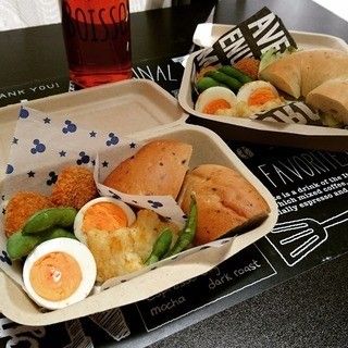 動物園にお出かけの際に、海老原葉月さんが作ったこちらの行楽弁当はコストコのベーグルをメインにデリ風の詰め方がセンスの光ります。痛みやすい葉物を避け枝豆イン♪セリアのお弁当箱は使い捨てもできておしゃれ!