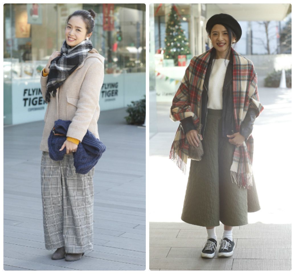 今年のトレンドのチェック柄、ただ着用すればいいってわけでもありません。写真左のコーデは、あえてチェック柄の大きさを変えたWチェックづかいがグッド。そして右の写真のコーデは、重くなりがちな黒いアウターを、大判のチェック柄のストールで明るい印象にしています。小物一つで、上手にコーデできている正解例です。