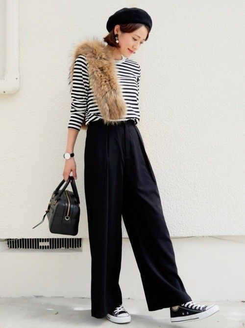 黒の【ワイドパンツ】で大人のモノトーンコーデ