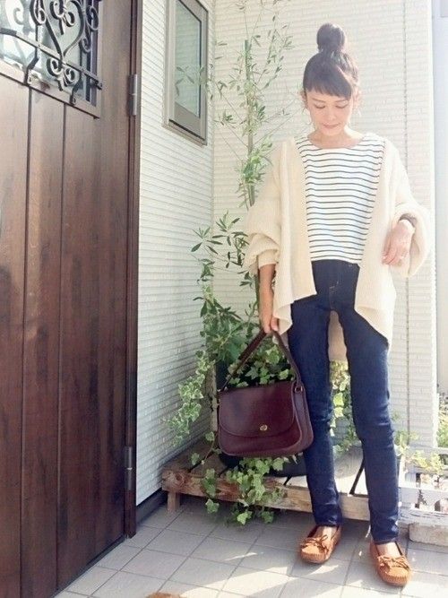 シンプルで合わせやすい、ブラウンのモカシンがGUのもの。デイリーに活躍してくれるシューズも、GUなら色チ買いもアリ!SEVENDAYS=SUNDAYのボーダーT×AMERICAN HOLICのスキニーデニムのシンプルコーデに、バルーン袖ニットカーディガンを羽織ってトレンドを取り入れて。カジュアルコーデにCOACHのバッグを持って、大人感をプラス!