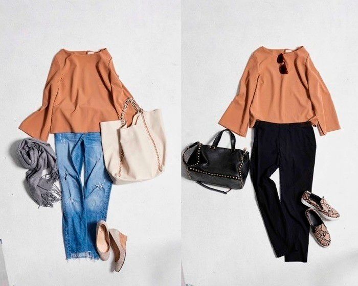 落ち感があって体のラインをあいまいにしてくれるとろみブラウスは、きれいめな印象にも一役買ってくれる優秀アイテム。大人は透けないほどよく地厚な生地を選ぶと、1枚でカジュアルにも着られます。オンの日は上品どうしの組み合わせ、オフの日はダメージデニムではずすなど、いろいろなシーンで大活躍します。