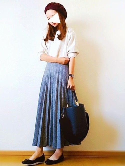 バケツバッグがしまむらのもの。しまむらはバッグも豊富に揃っています。バッグの中でも、トレンドの「バケツバッグ」がイチオシ!GUのフェイクファーバッグストラップを付けて秋仕様に◎ベレー帽・ワッフルT・バレエシューズはユニクロ、スカートは古着!プチプラなのに「高見え」する、シックな大人カジュアルコーデがおしゃれ上級者です◎