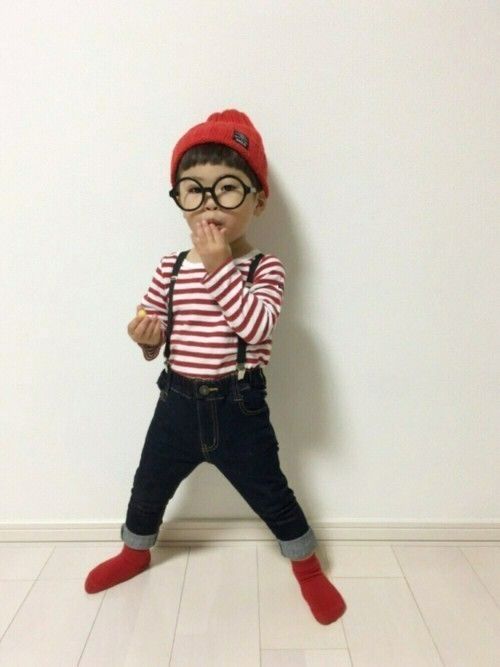 ボーダーT、ジーンズ、ニット帽に丸眼鏡を合わせれば、ウォーリーに変身!