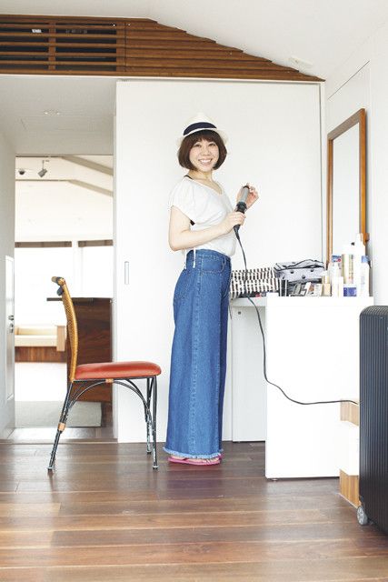 私のヘアメイクのスタイルは、「その人のベースをできるだけ生かす」こと。まるで別人に仕上げるのではなく、持ち前の顔や髪のクセはクセで生かしながら、その人ならではのかわいさを引き出すのがモットーです。ですから仕事をするときは、モデルの肌や髪のツヤ、色などがよく見えるよう、自分は柄物やきつい色の服を着ることを避けます。それでも、職業柄おしゃれには気をつかいますし、ある程度流行は取り入れたいので、仕事で着るものを選ぶときは結構悩みますね。