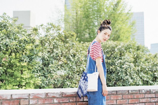 カジュアルな洋服が多いので、ちょっと小さめのバッグで大人っぽく仕上げます。そこへスカーフをプラスすれば、簡単なのにぐっと今年顔に♡