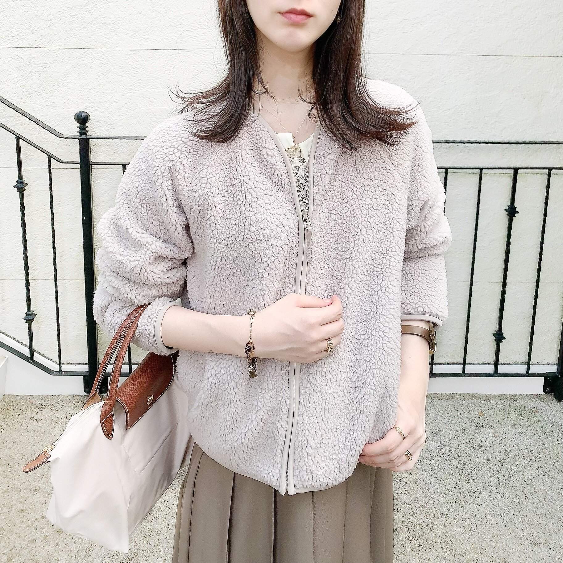 こんにちは。minamiです。今日はUNIQLOのフリース、ソフトボアフリースVネックカーディガンを着回してみました。