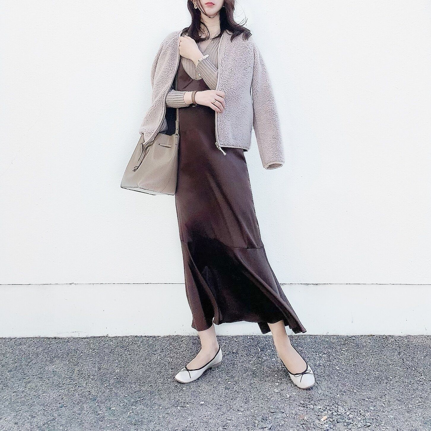この時期、ワンピースだけだと寒いことが多いので、フリースがあると気軽に着れていいですよね。