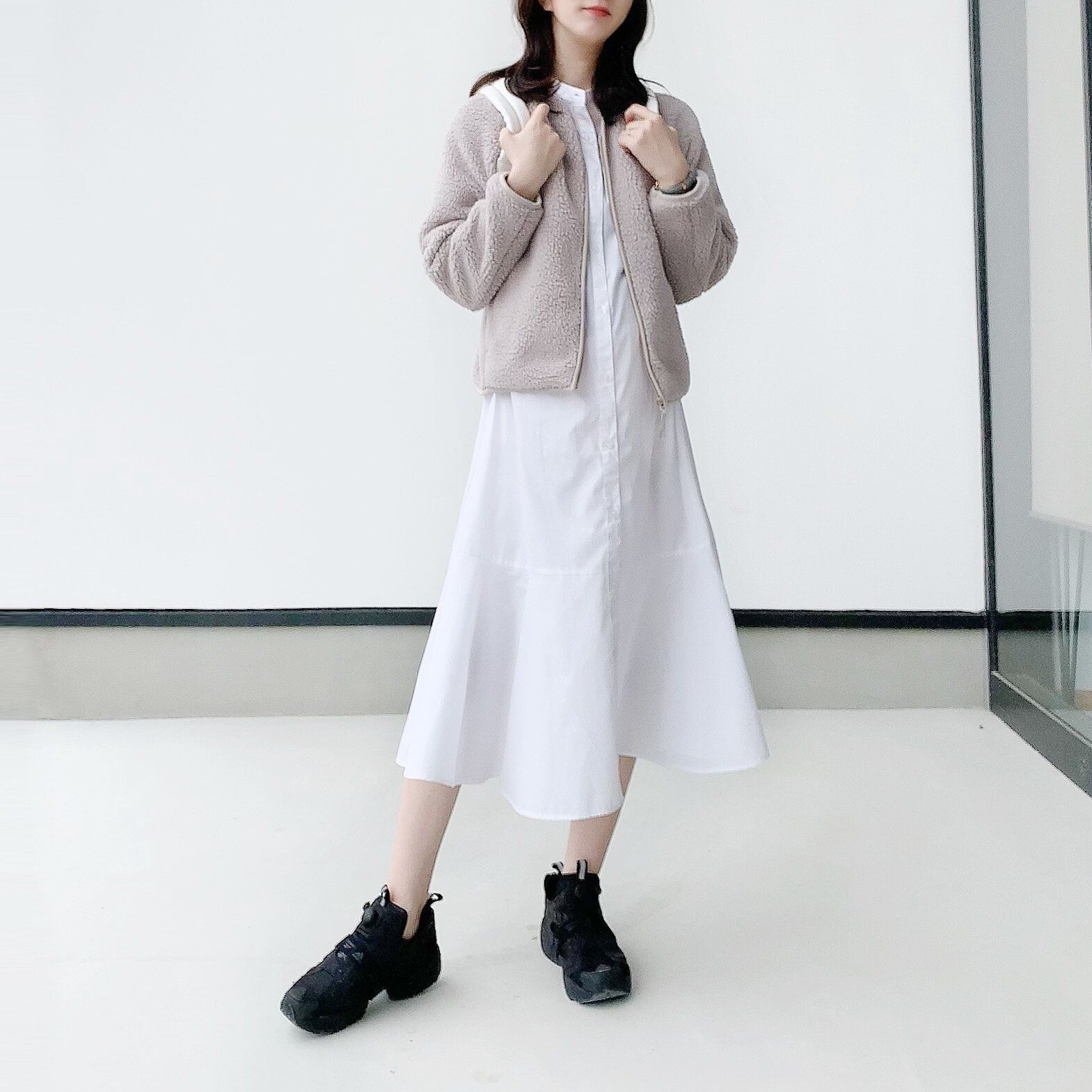 最後はguのワンピースと合わせたシンプルコーデ。