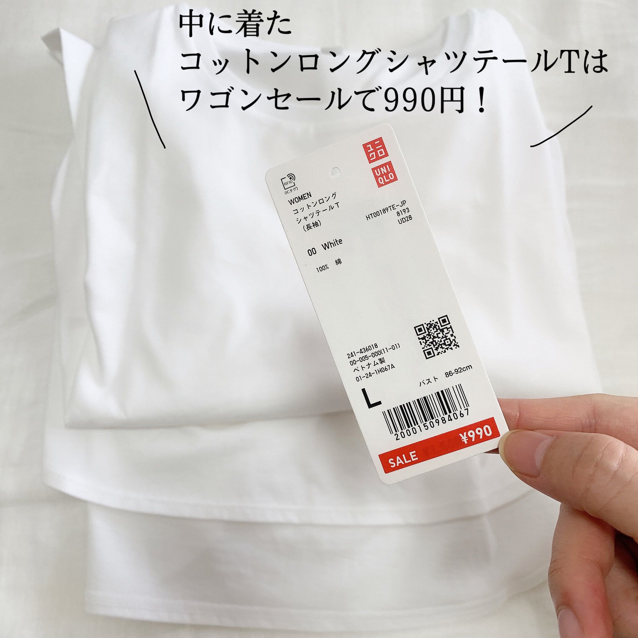 コットンロングシャツテールTは、UNIQLO店舗のワゴンセールで990円でした。