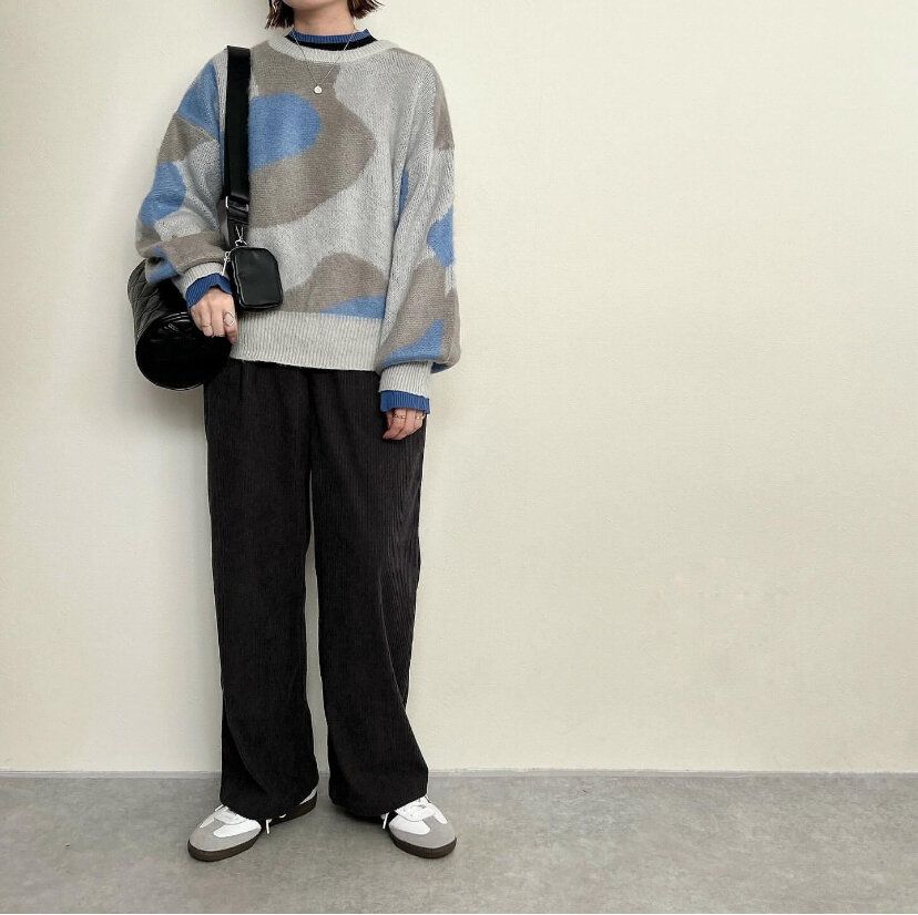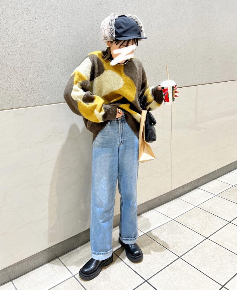 トレンドのマーブル柄ニットが2,000円以下で購入できる!と、発売当初からSNSで話題になっている「キモウマーブルガラJQPO」(1,969円)はコーディネートに取り入れるだけでおしゃれさんになれる高見えニット。丈感はやや短めで後ろが少し長くなっています。ワイドシルエットのボトムスと相性抜群です。