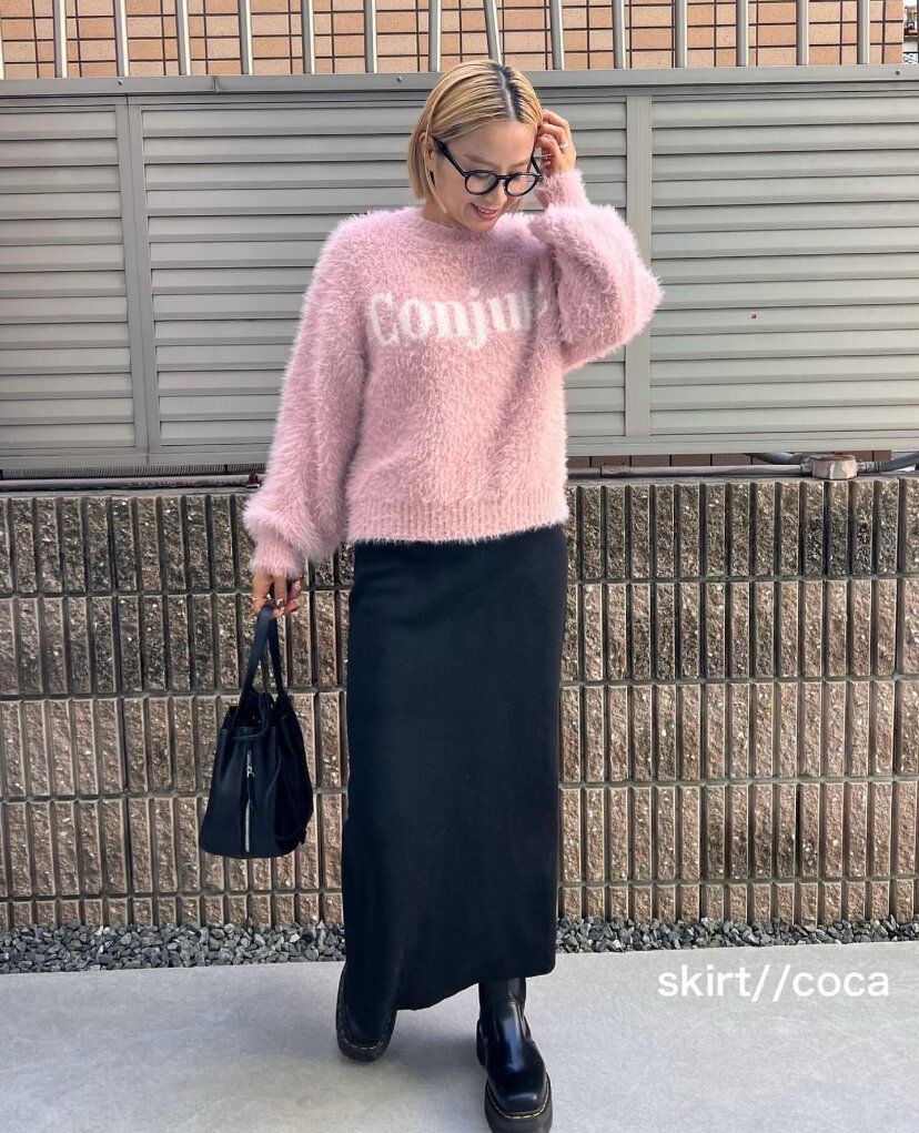 「フェザーロゴPO」(1,969円)は毛足の長いトレンドのフェザーが高見えポイント。やや薄手のニットなので、今から春先まで着用できます。フェザーとロゴの存在感のあるニットはシンプルなアイテムに合わせる事でよりコーディネートの主役に。低身長さんも高身長さんもスタイルアップして見えるコーディネートに取り入れやすい丈感が短めのデザインなのも◎!