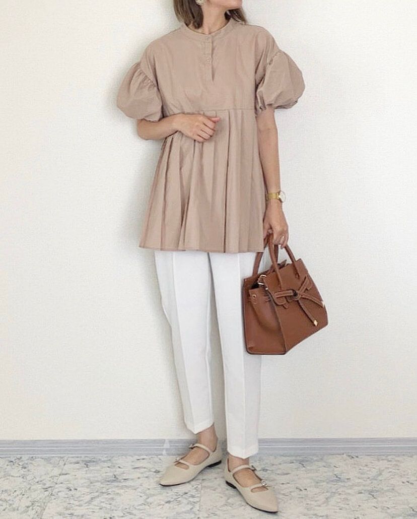フレアデザインのトップスももちろん相性抜群♪「ストレッチテーパードパンツ」は可愛らしいデザインのアイテムも大人っぽく着こなす手助けをしてくれるので、アラフォーファッションには欠かせないマストアイテムです。着ぶくれを懸念して避ける人が多いホワイトもシルエットがきれいなのでトライしやすいのも「ストレッチテーパードパンツ」だからこそ。