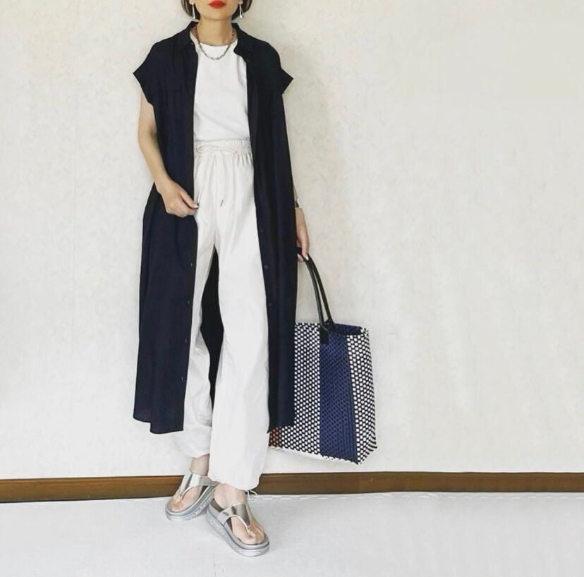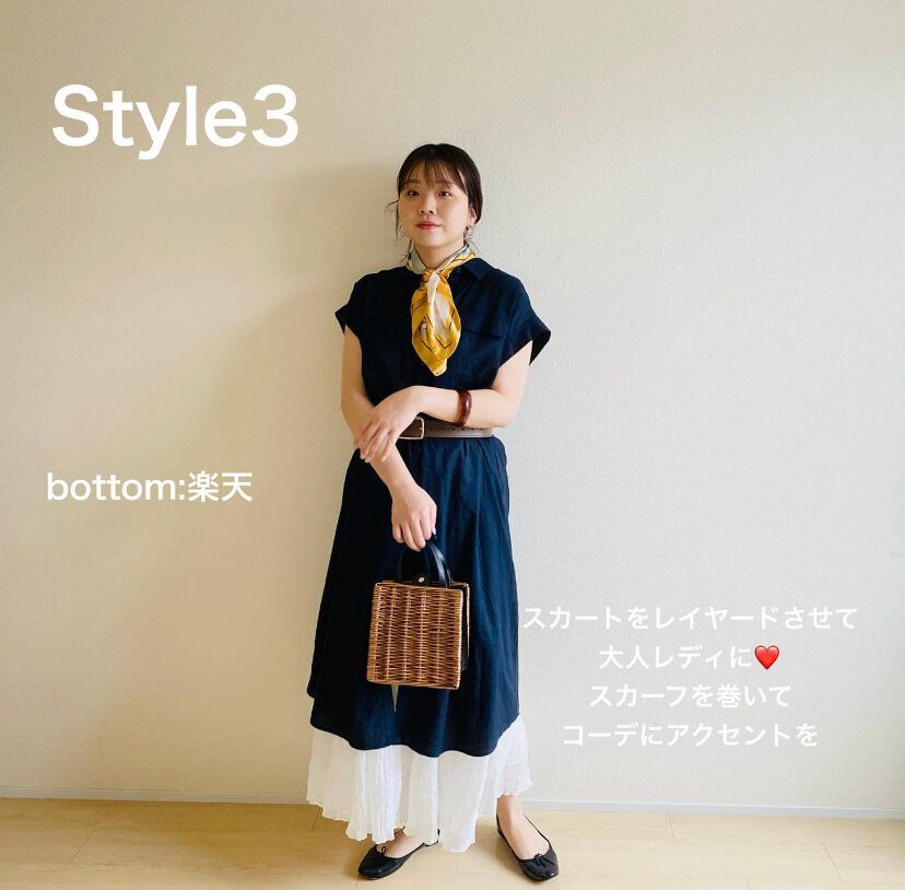 「ワンピースを一枚で着るのはちょっぴり勇気がいる」「丈感が微妙に短い」そんな人はロング丈のボトムスを合わせたレイヤードスタイルにすれば問題解決!ワンピース自体がシンプルなデザイン・カラー・そして軽やかな印象なのでワイドパンツやレースパンツ、ロングスカートなど手持ちのアイテムと合わせやすいのもうれしいポイントです。