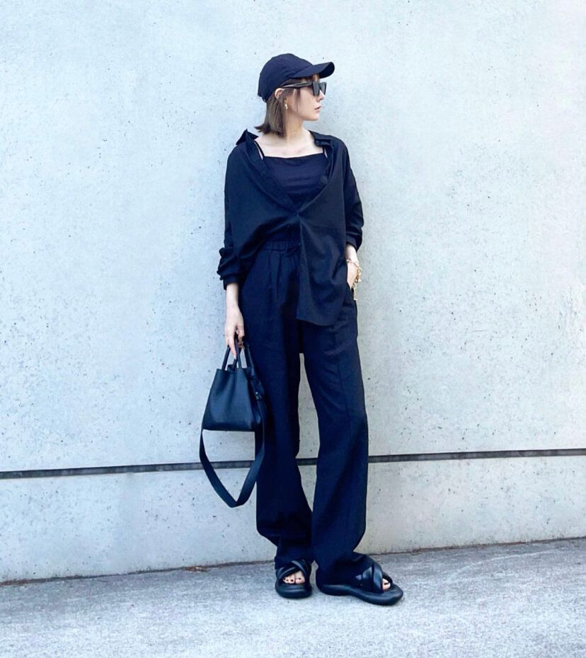 「リネンブレンドプルオンパンツ」(2,990円)は、暑い日も肌触りのより生地感・ウエストはゴムで履きやすい・足のラインをひろわない程よくルーズなシルエットと魅力が詰まったアイテムです。オールブラックコーディネートでも重たくならないのがリネンブレンドアイテムの魅力。カラーバリエーションは5色展開と豊富なので、色違いで購入する人も多い人気のアイテムです。