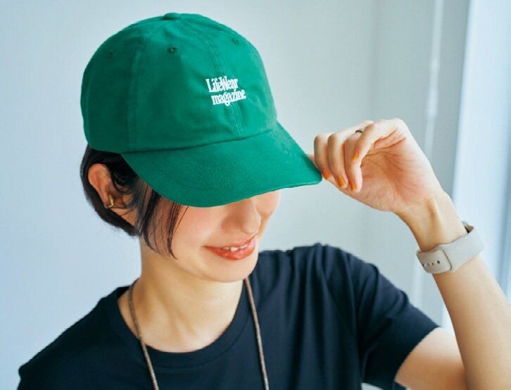 夏は帽子で着こなしにアクセントを。鮮やかな緑色のキャップをかぶると、グッとスポーティーな雰囲気に。ストローハットならガーリー、バケットハットならカジュアルに早変わり!