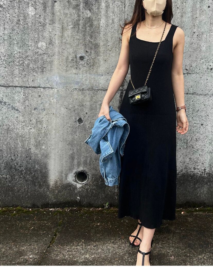 多くのファッションインスタグラマーがリブニットワンピースに合わせているアイテムの一つがデニムジャケット。少し短めのデニムジャケットを合わせればより目線が上にいくのですらっとした印象を与えてくれます。リブニットワンピースはカジュアルな印象が強いデニムジャケットを女性らしいコーディネートに仕上げてくれます。