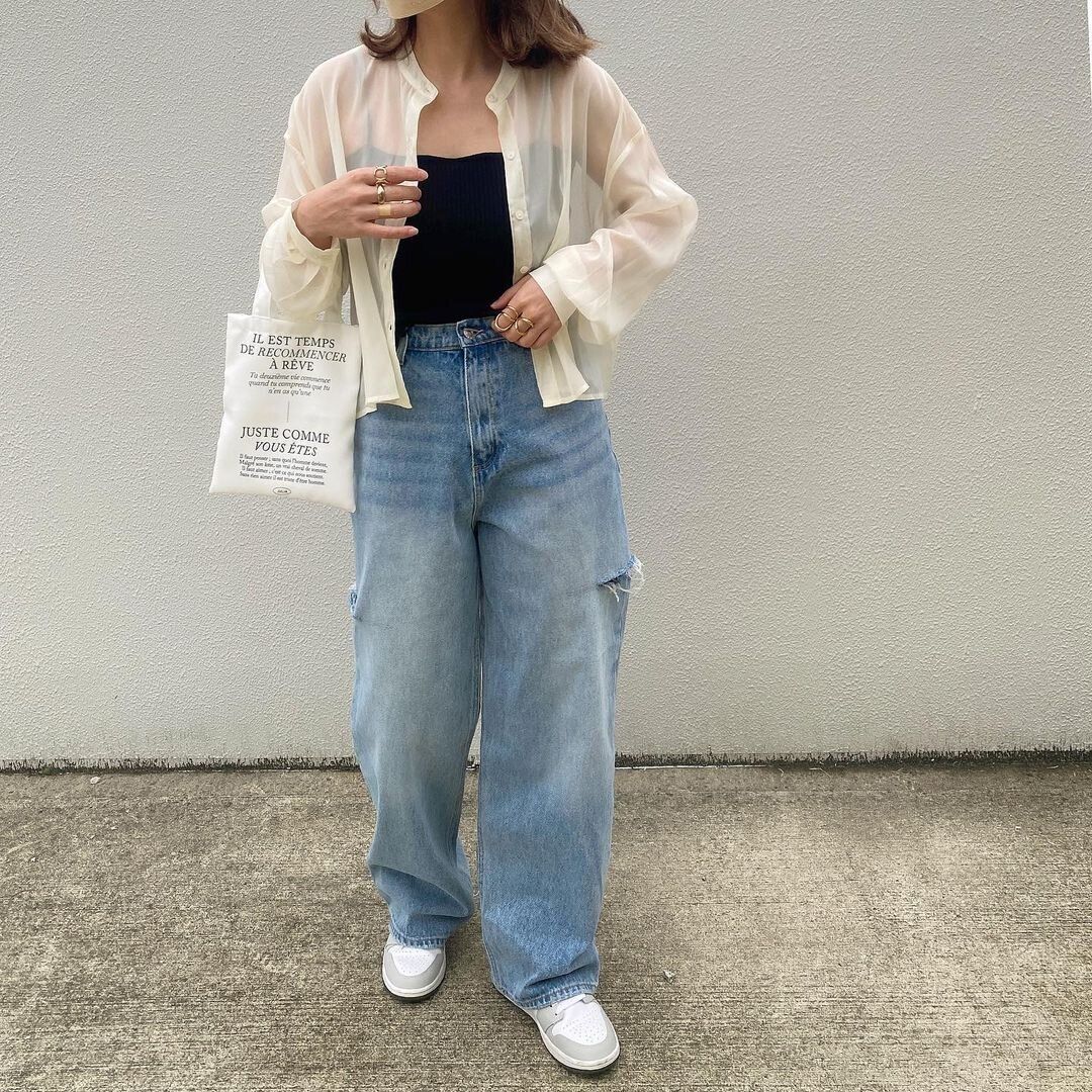 デニムを買い足すなら、クラッシュデニムが今季のトレンド。ダメージ加工がやり過ぎないデザインを選べば、大人でも着こなすことができます。シアーシャツと合わせれば、女っぷりもアップ!