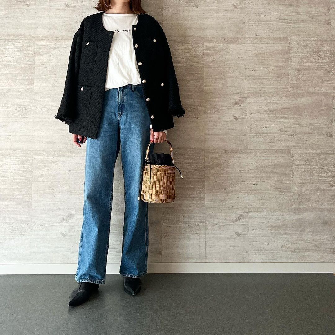 上品見えもするツイードジャケットは、きちんと感が求められるシーンで大活躍。ママたちとの集まり、ちょっとした挨拶など、かしこまりすぎず、ラフすぎずに着こなしたい日に最適です。手持ちのデニムとTシャツ・カットソーを合わせるだけなので簡単にコーディネートできるのも嬉しい!