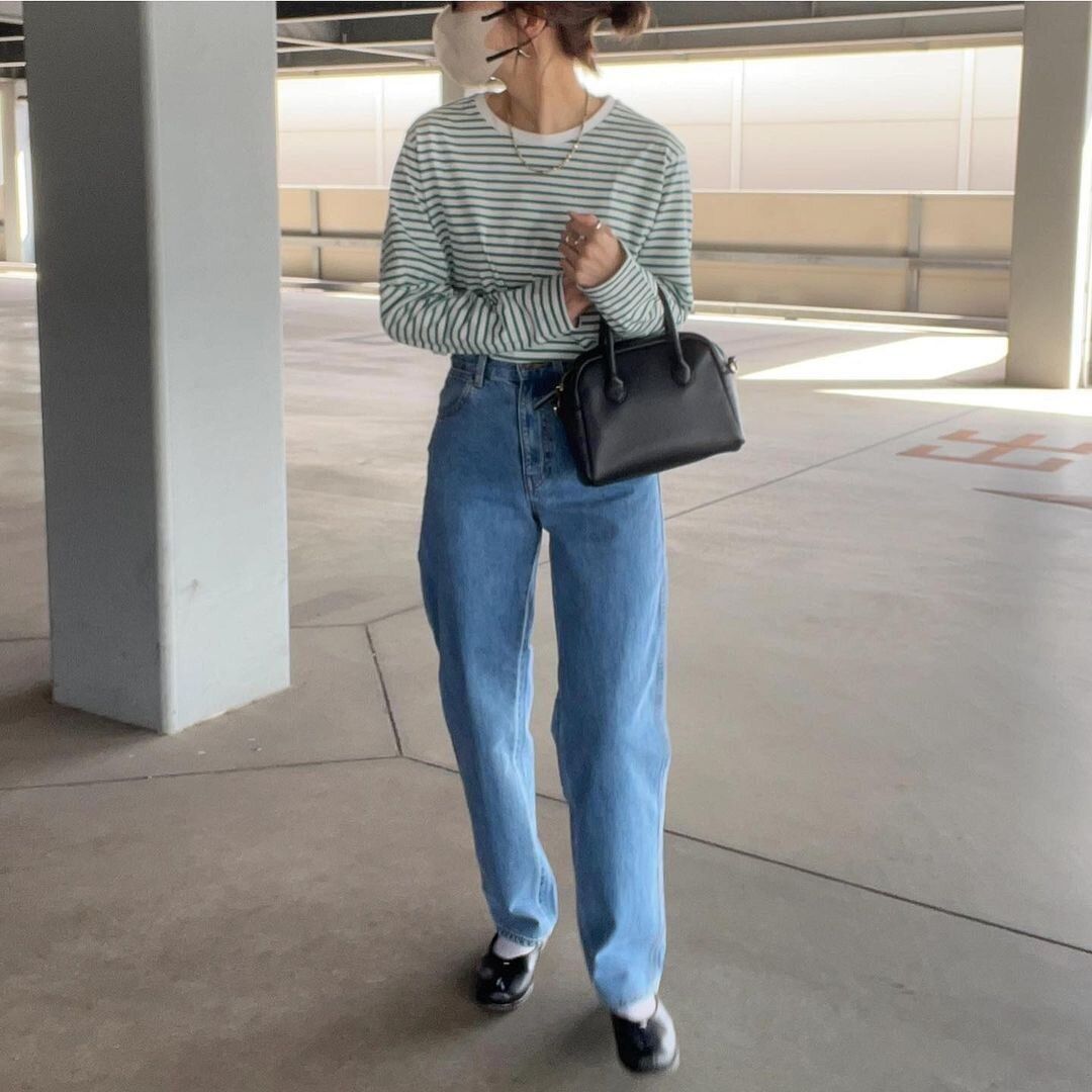 春に着たくなる鉄板のボーダー×デニム。ちょっぴり冒険してカラーを取り入れると、グッと華やかな雰囲気に。ボーダーカットソーは、潔くウエストインさせてスッキリと着こなすのもポイントです。