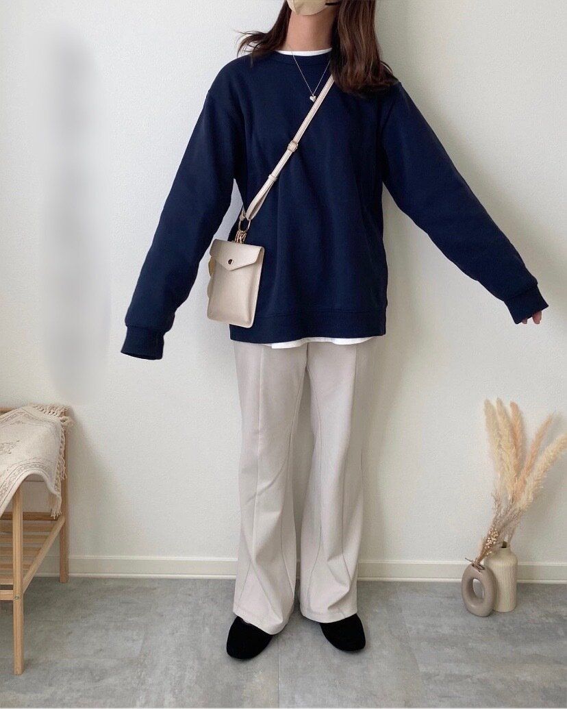 あえて「ミニ裏毛オーバーサイズT」をレイヤードアイテムとしてチラ見せさせるのもおすすめ。ミニ裏毛オーバーサイズTは定番のロンTよりも少し丈が長めなので、手持ちのお洋服に合わせてもバランスが取りやすい丈感です。ミニ裏毛オーバーサイズTは1枚でもかわいいアイテムなので、まだ朝晩は冷えるけど日中は暖かい……そんな日の気温に合わせてレイヤードしたお洋服を着脱すればおしゃれなまま調節出来ちゃいます。