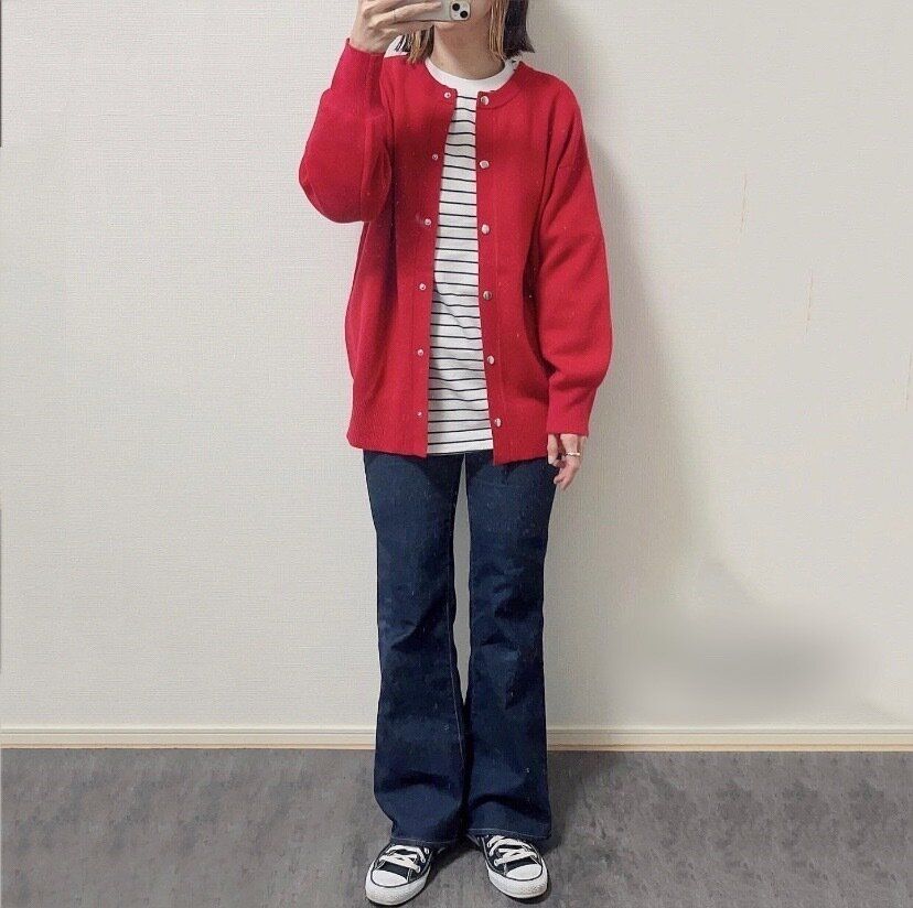 幅広い年齢層のファッションに取り入れやすい柄といえば「ボーダー」。買いたすなら「ミニ裏毛オーバーサイズT」のボーダー柄がマスト。ミニ裏毛オーバーサイズTは細めのボーダーを採用しているので、いい意味でボーダーを強調せずインパクトのあるカラーのアイテムを合わせても喧嘩をしません。
