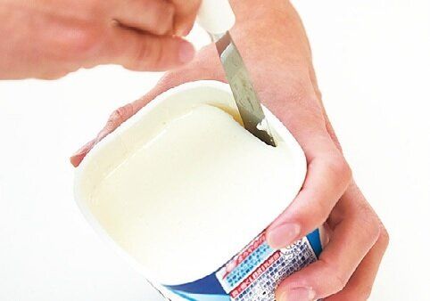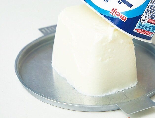 (2)湯大さじ4に粉ゼラチンをふり入れてふやかし、ラップをふんわりと掛けて電子レンジで10秒溶けるまでチン。(1)に加えて混ぜ、ヨーグルトのパックに入れ、冷蔵室で6時間以上冷やし固める。