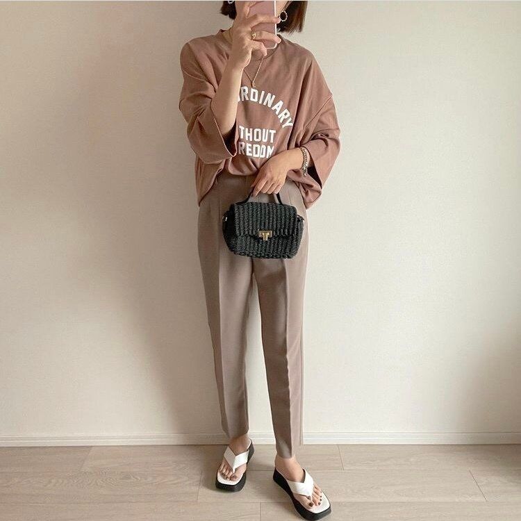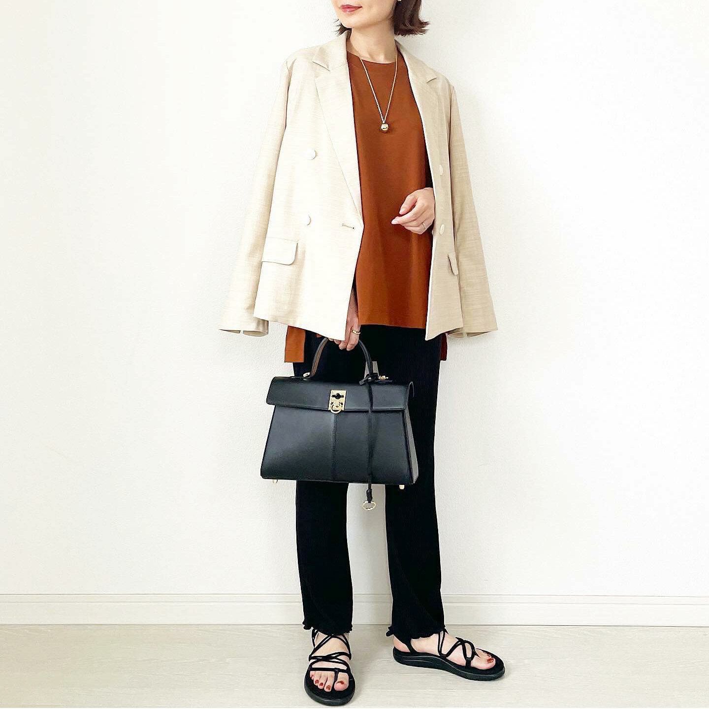 スッキリ細身のシルエットなので、リブパンツでも上品な印象で着こなせて便利!ジャケットと合わせたこなれコーデもマネしたくなります。