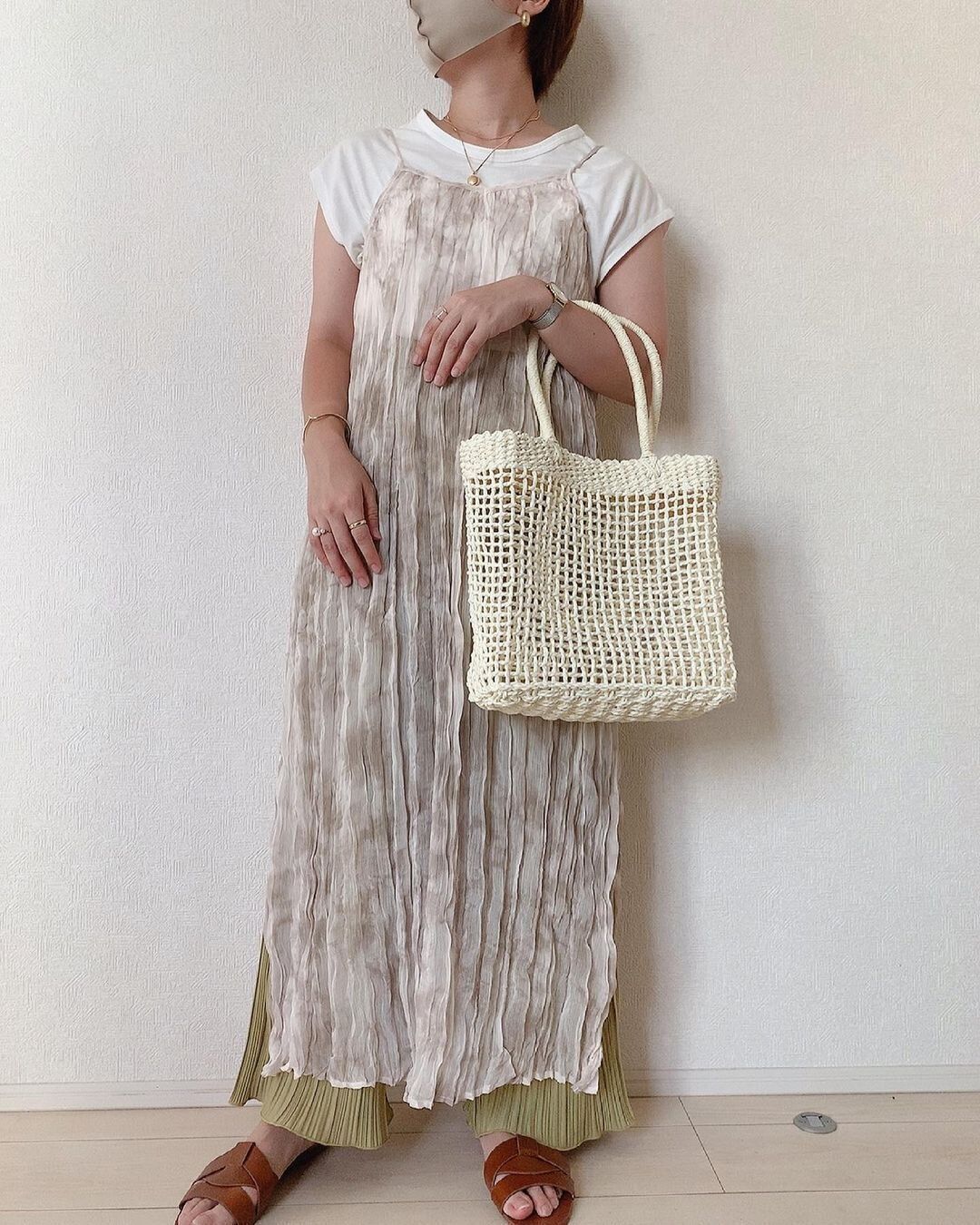 かごバッグ×ハーフパンツで旬な夏スタイル