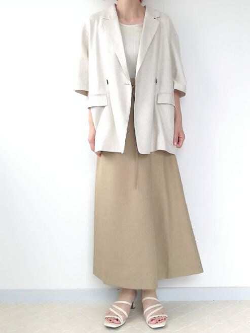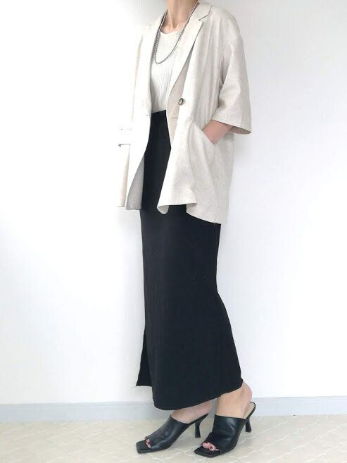オーバーサイズなジャケットに重心が低いロングスカートを合わせてしまうと、もっさり重たい印象になってしまい、「着太り」にもつながりかねません……!