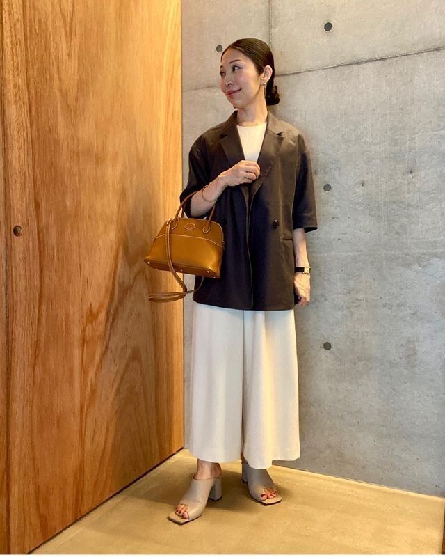 同じく「ハーフスリーブダブルブレストジャケット」を使ったコーディネート。