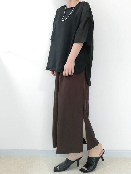せっかくのシアーアイテムなのに、全身真っ黒で抜け感もなく老けて見える原因に。