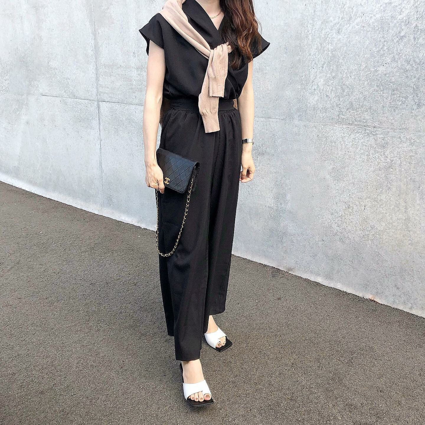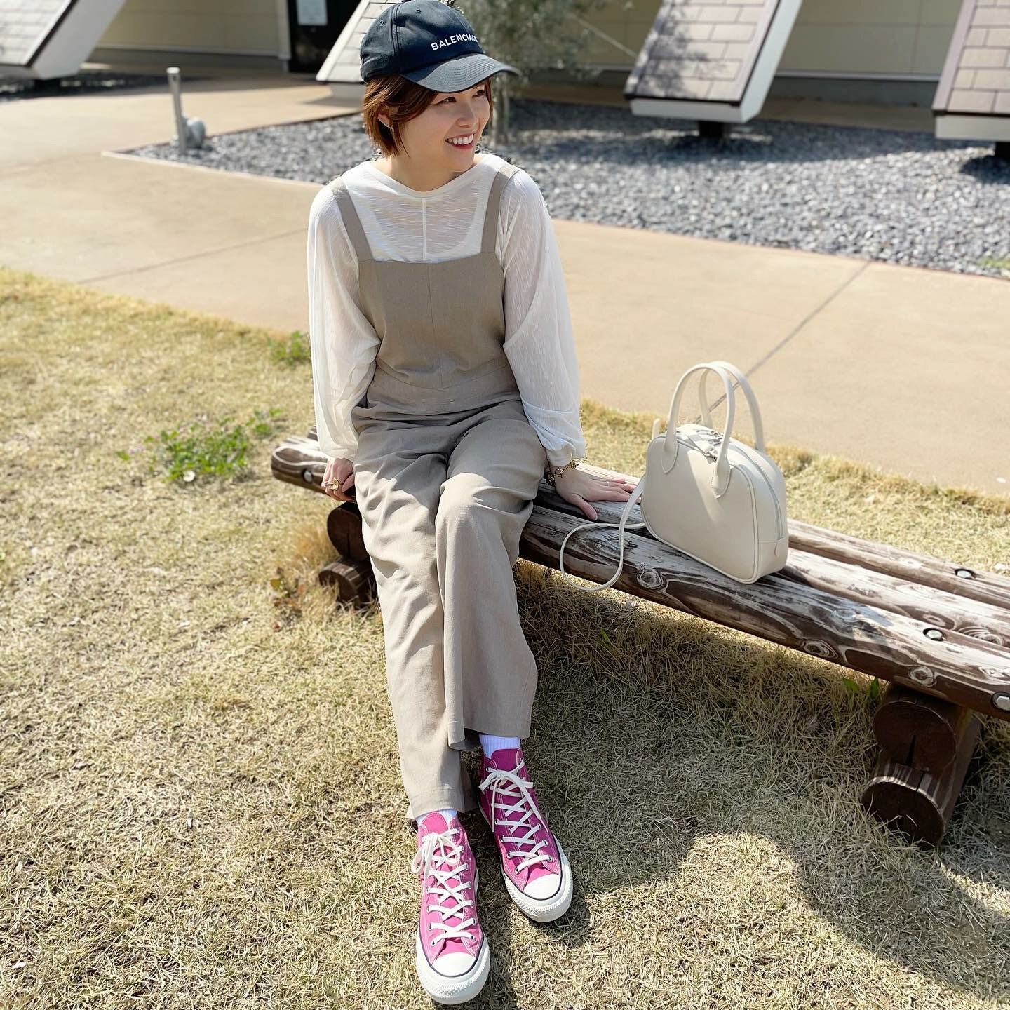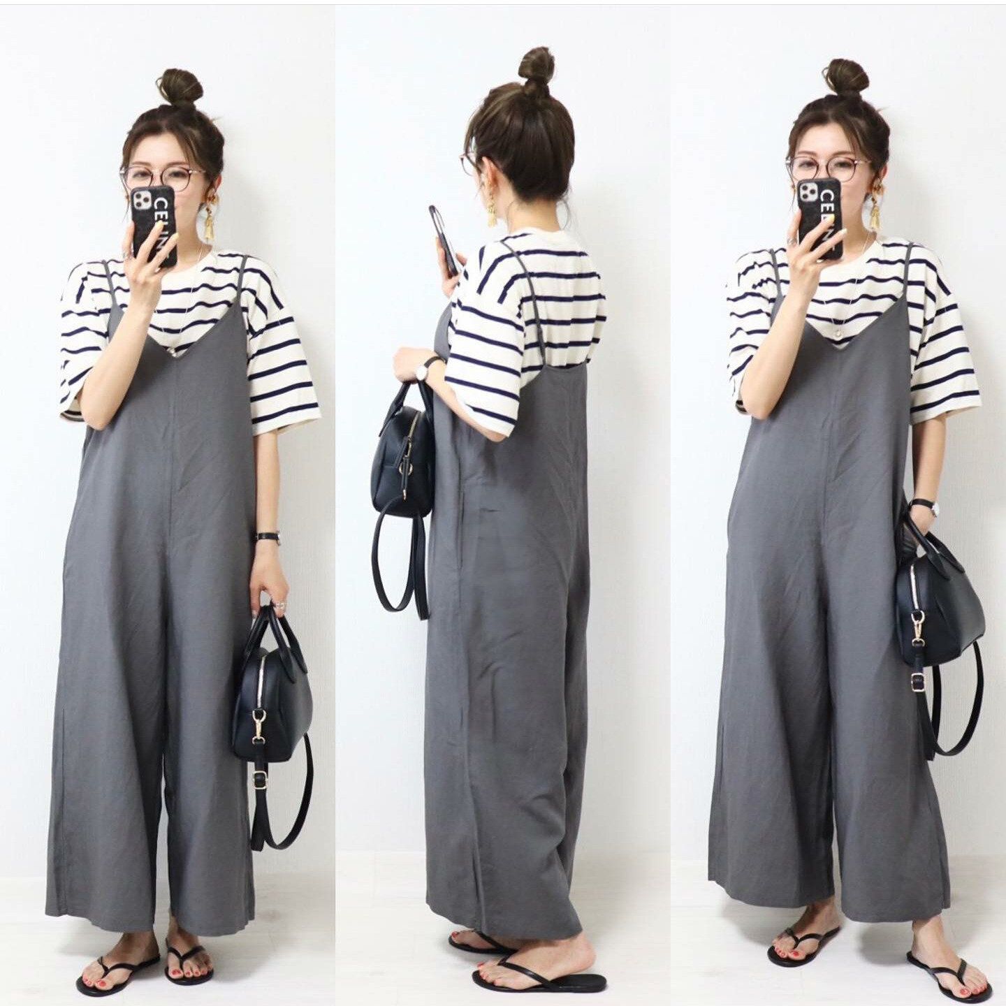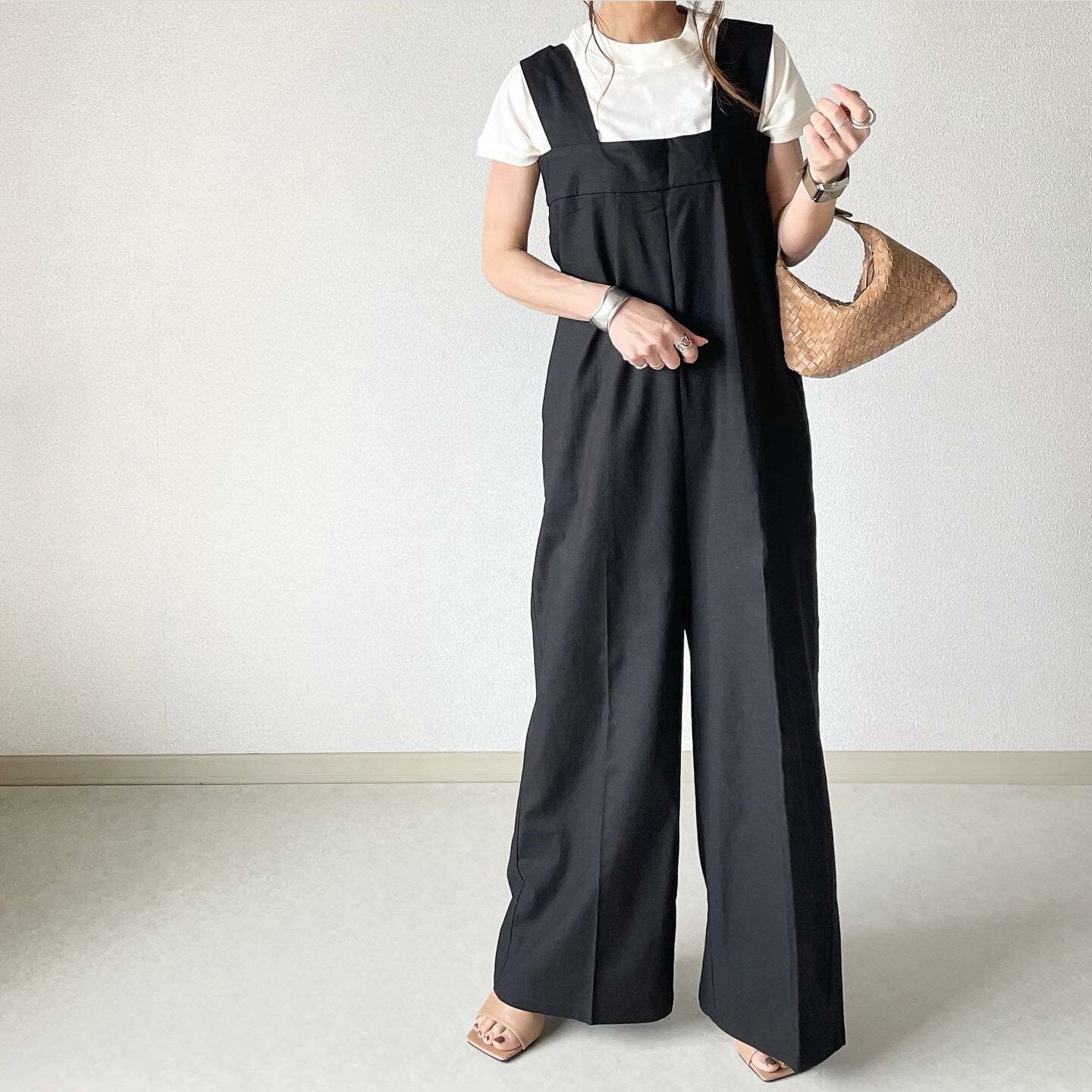 3.肩紐が太オールインワンは安定感のある着こなしに