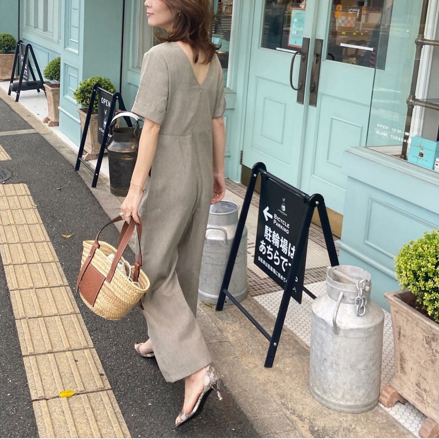 こちらは、ZOZOTOWNで販売している「rectangle(レクタングル)」の「リネンブレンドオールインワン」(5,190円)です。太めのストラップが、肩の占める面積を華奢に見せてくれます。