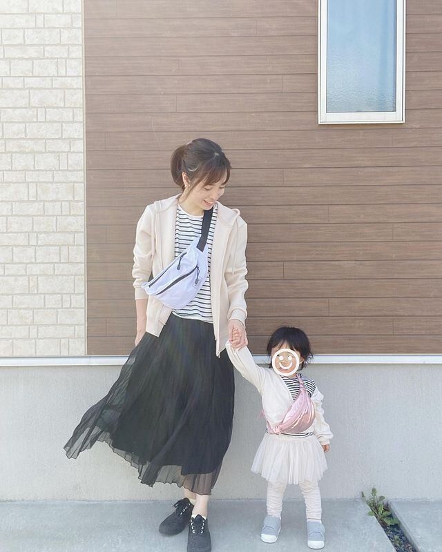 プチプラなのにしっかりした素材は、さすがワークマン!小さい子がいるママも気兼ねなく着られるパーカーです。スカートコーデをパーカーでカジュアルダウン。言われなければ、ワークマンとはわからないおしゃれさです!